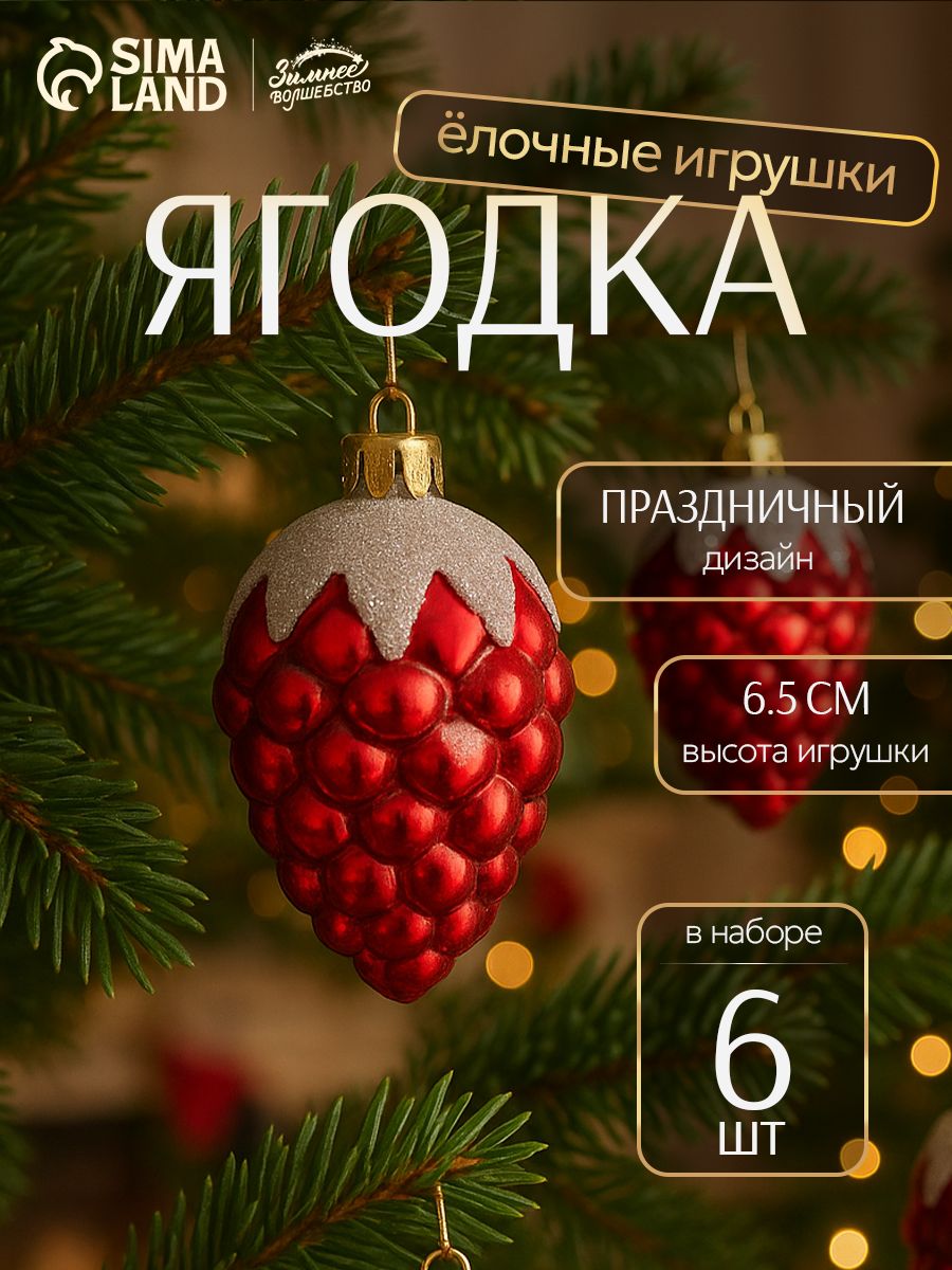 Елочные украшения новогодние, 6 шт, 6,5*4 см / Набор елочных игрушек на елку