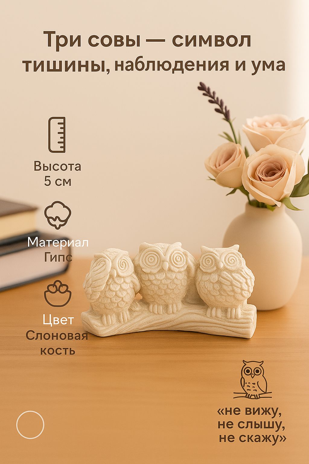 Статуэтка декоративная "Три совы на жердочке", 10 6 5 см, цвет слоновая кость, интерьерная фигура