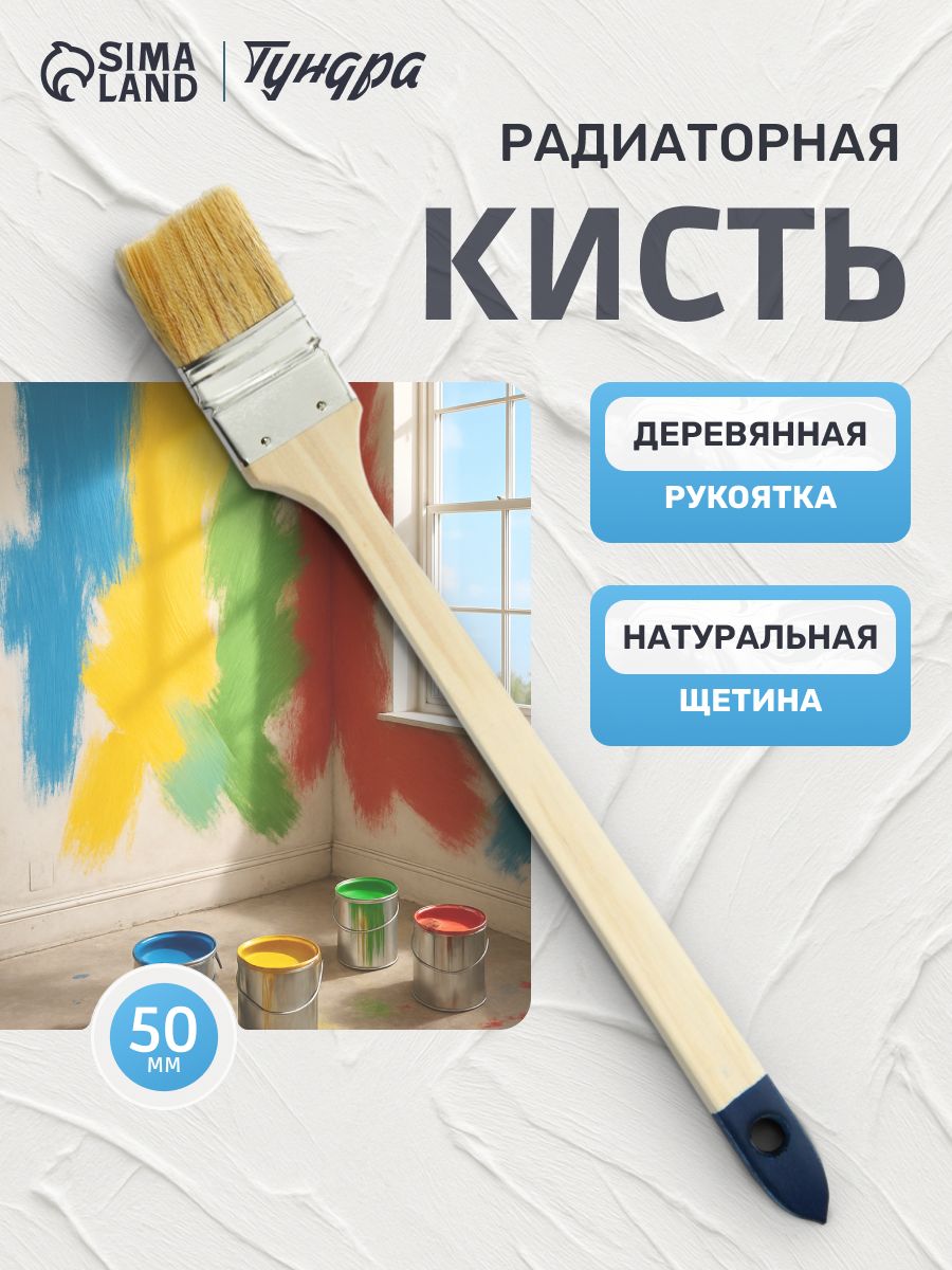 Кисть радиаторная Тундра, натуральная щетина, деревянная рукоятка, 2 дюйма, 50 мм