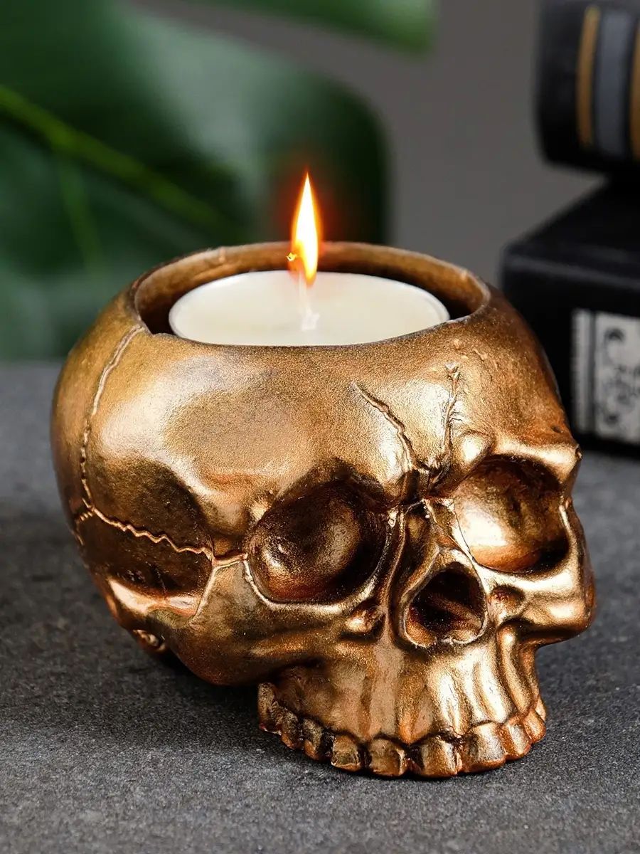 Подсвечник "Череп", бронза, 9 см х 7 см х 5 см