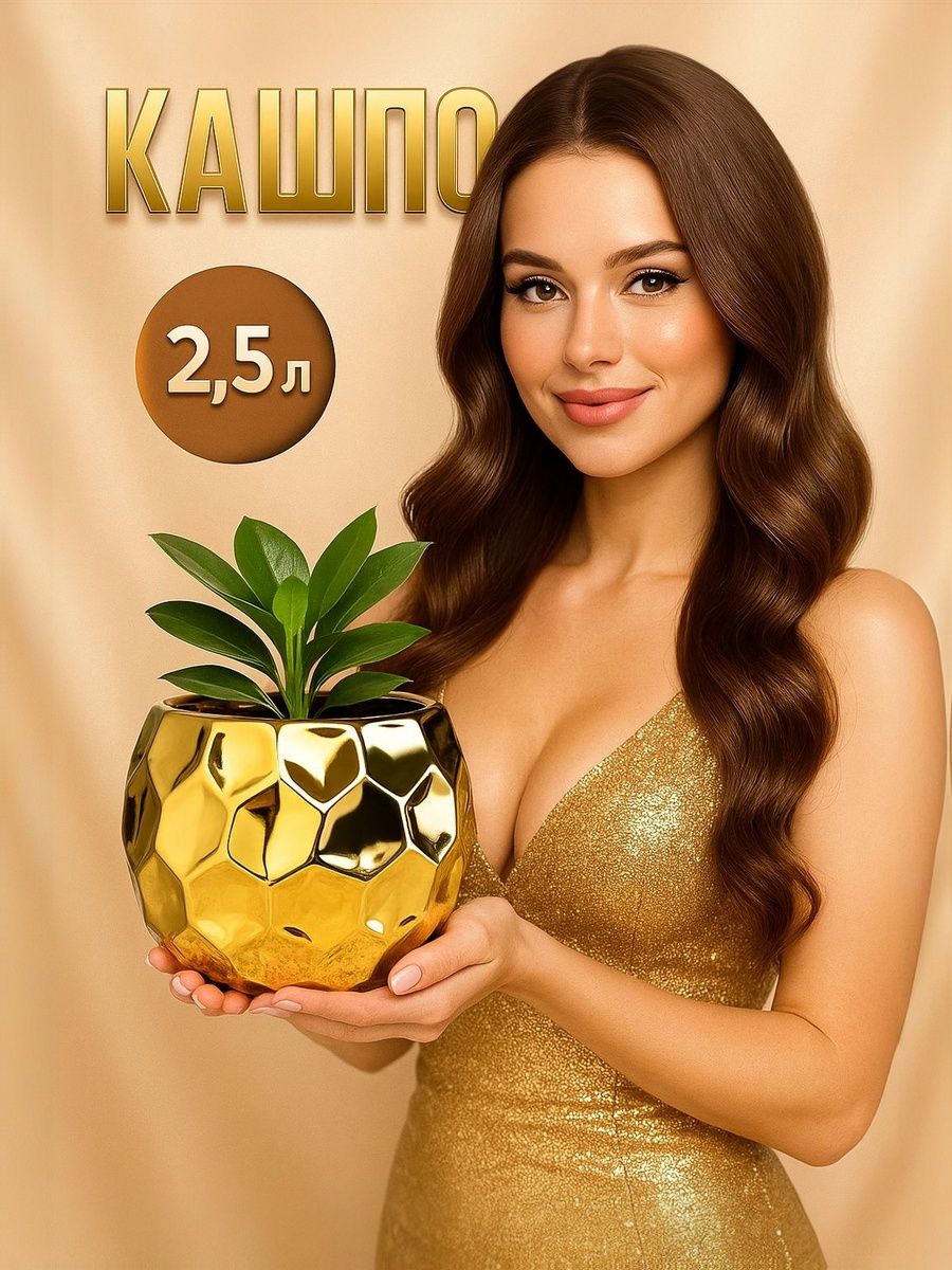 Кашпо Солнечный шар 19 19 16 см, золотистое, с цветочным горшком / для комнатных растений / интерьерное