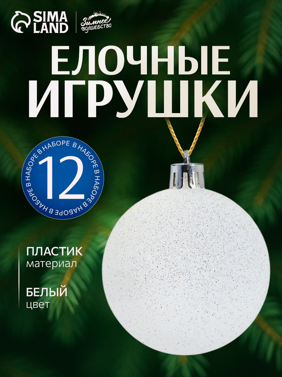 Елочные шары игрушки набор из 12 шт, 6 см, белые / Набор елочных украшений