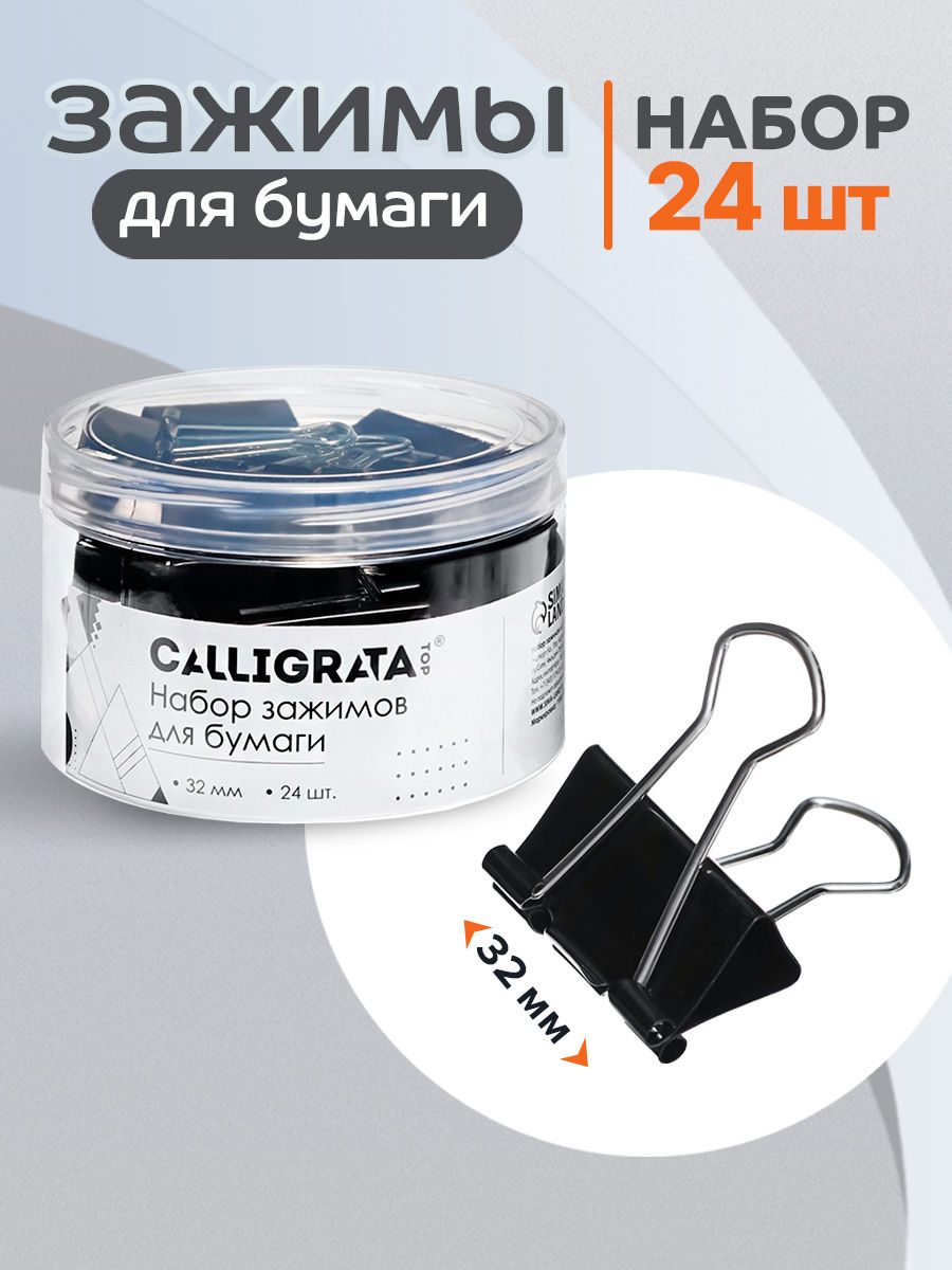 Набор зажимов для бумаг черных 32мм 24 штук, в пластиковой тубе
