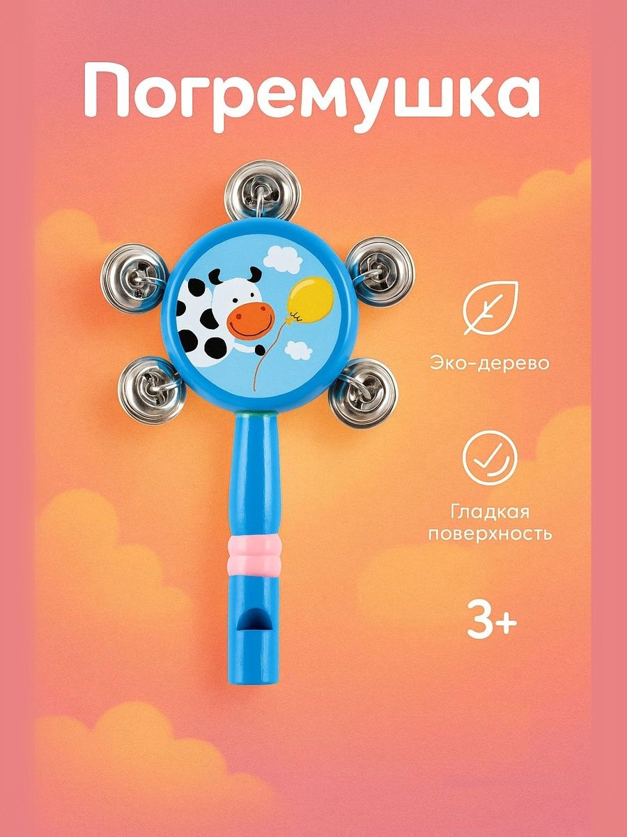 Погремушка с бубенцами Лесная мастерская "Веселые зверушки", музыкальная игрушка для детей,