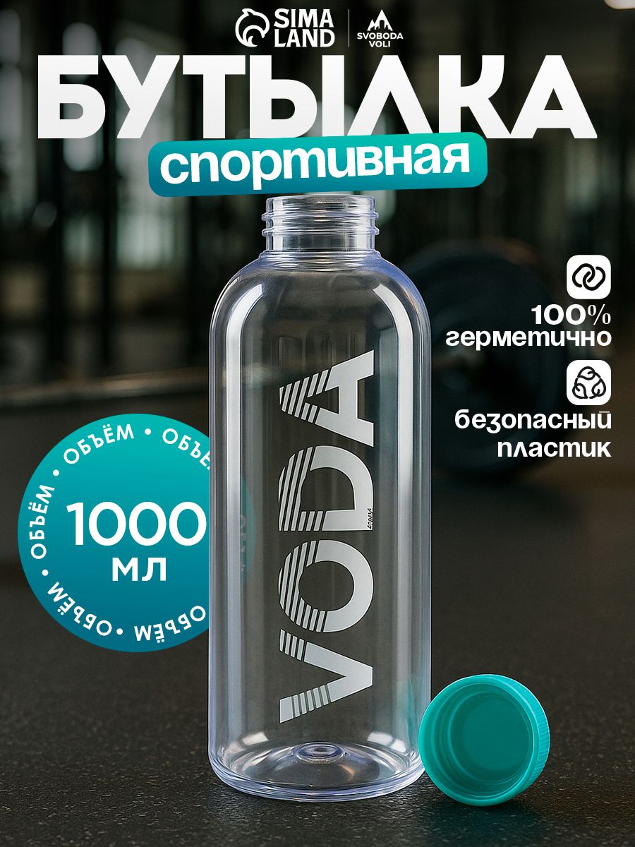 Бутылка для воды, спортивная, 1л, прозрачная "Вода"