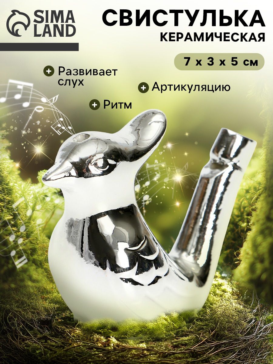 Свистулька птичка с водой Серебряная / Детская музыкальная игрушка