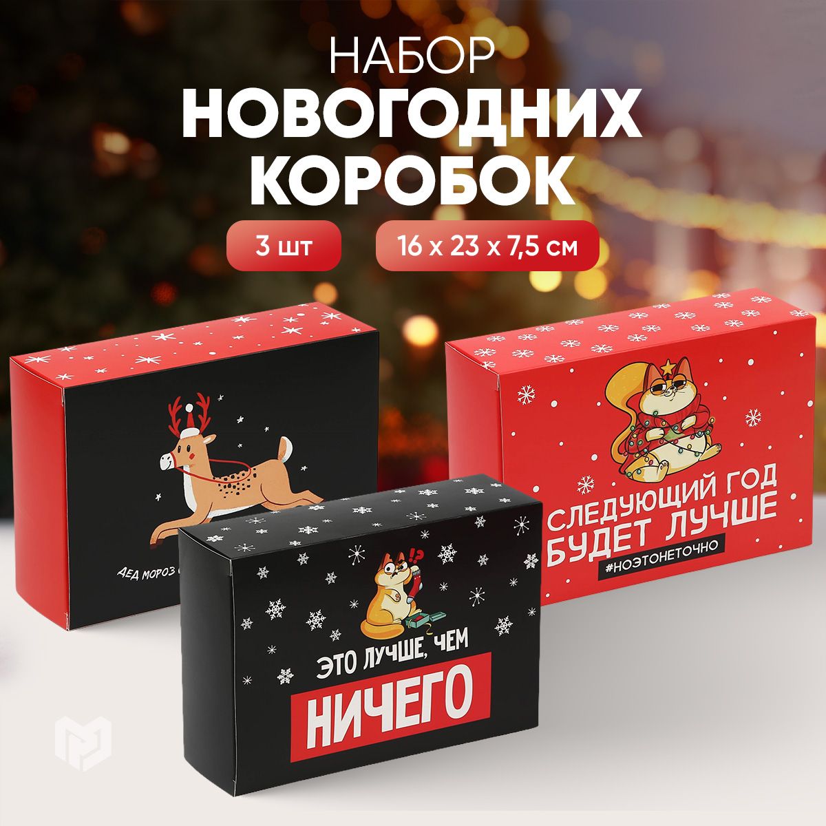 Набор подарочных новогодних коробок "Веселье", 3 шт.