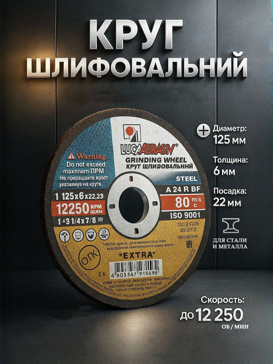 Шлифовальный диск Луга круг по металлу, 125 6 22 мм, 12250об/мин, Extra