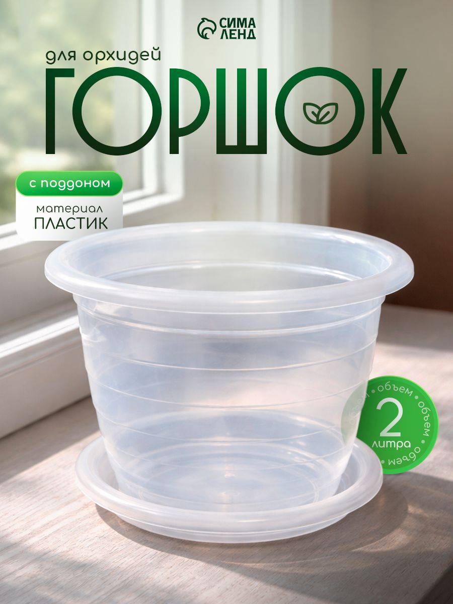 Горшок для цветов, 2 л, кашпо для орхидей, пластиковый, прозрачный