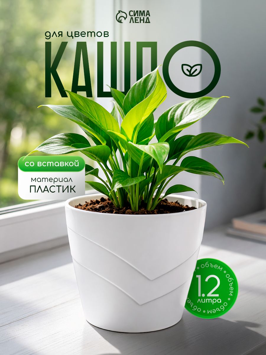 Кашпо со вставкой "Грация", объем 1,2 л, цвет белый