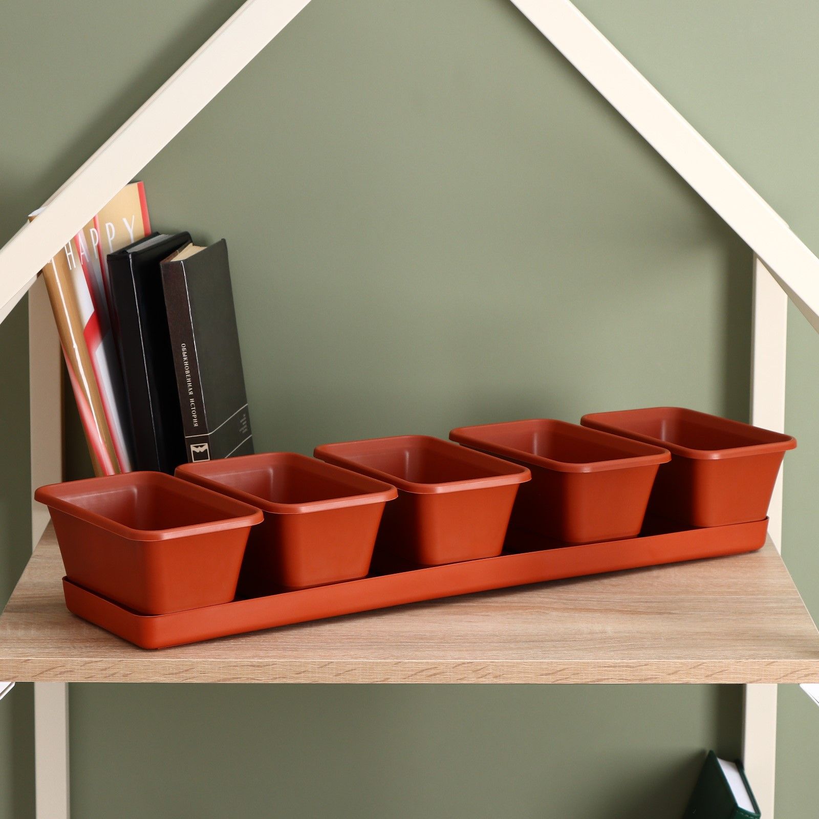 Набор горшков для цветов с поддоном Darel plastic, 750 мл, 53 см, 5 шт, цвет терракотовый