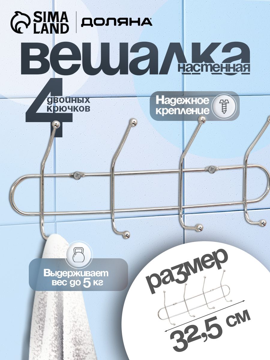Вешалка настенная для одежды в прихожую, гардеробную "Блеск", крючки 4шт, размер 32,5х5,5х13 см