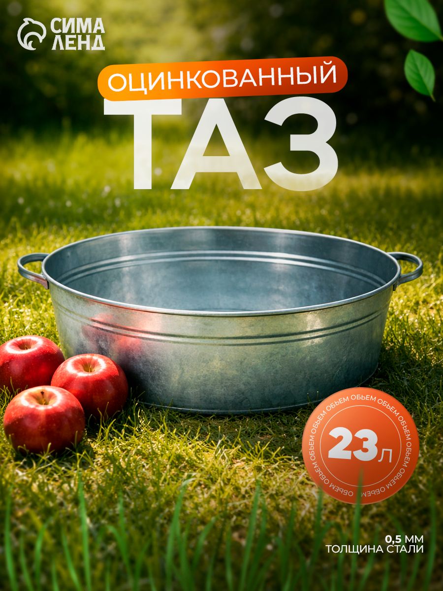 Таз для бани, овальный, с ручками, оцинкованная сталь, 23 л