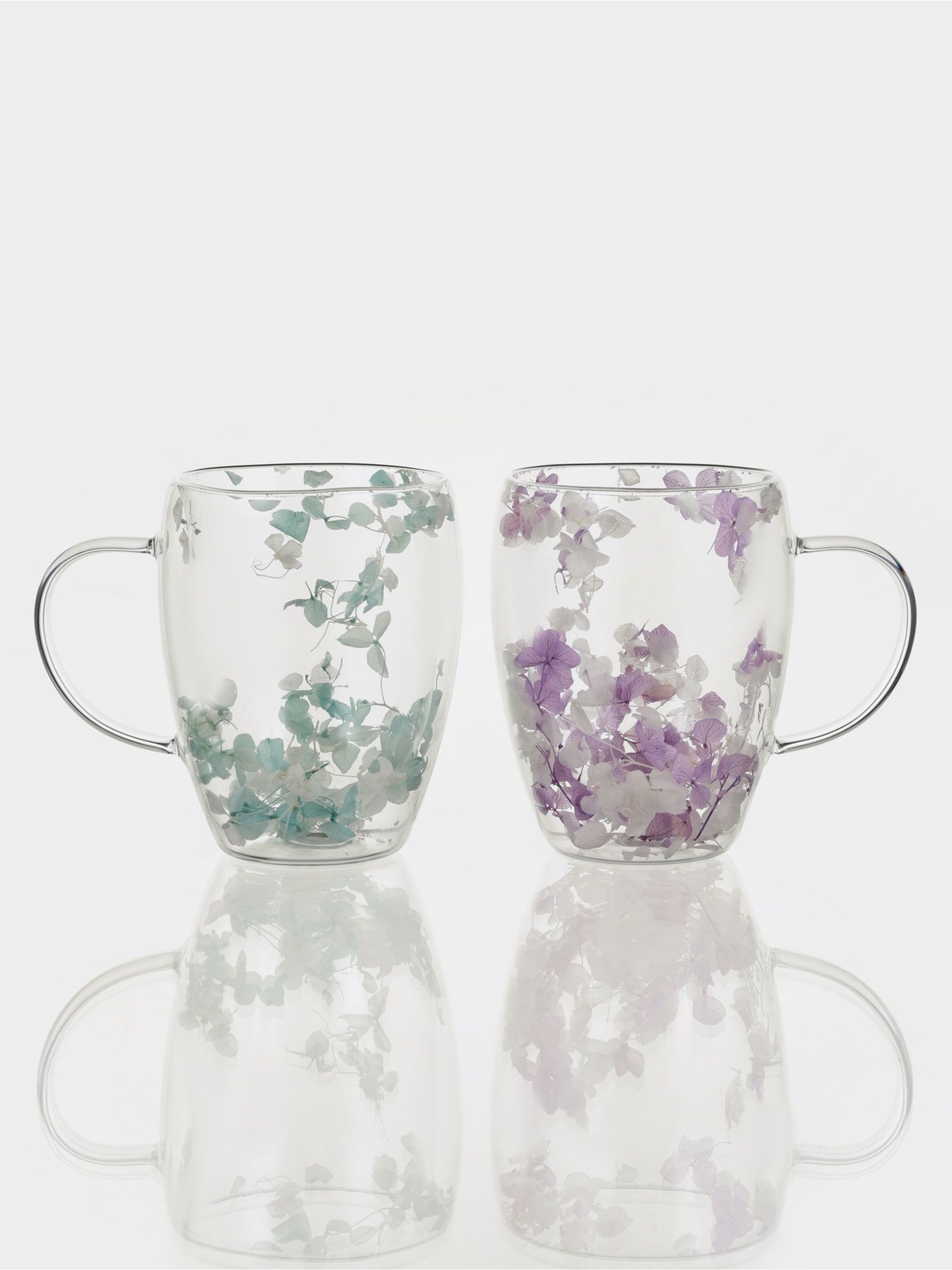 Набор кружек с двойными стенками Сухоцвет , 350 мл, 2 шт., стекло, прозрачный