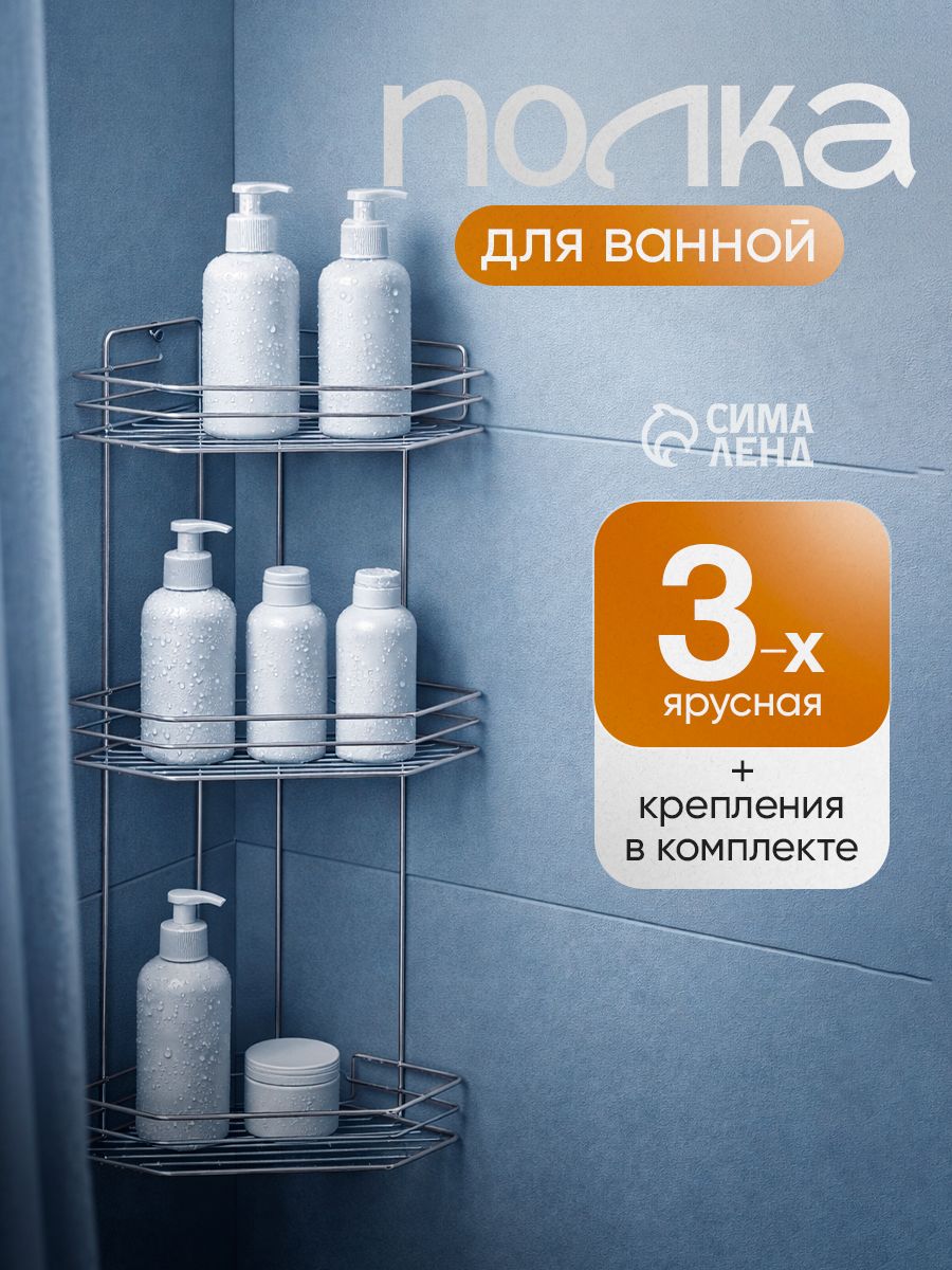 Полка для ванной угловая 3-ярусная, 20.5x20.5x52 см, хром