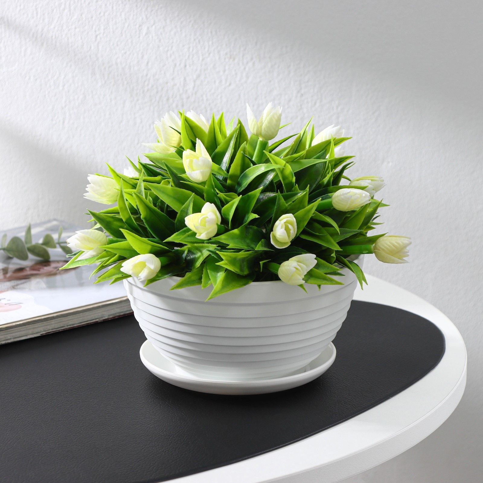 Горшок для цветов с поддоном Алиса, пластиковый, белый