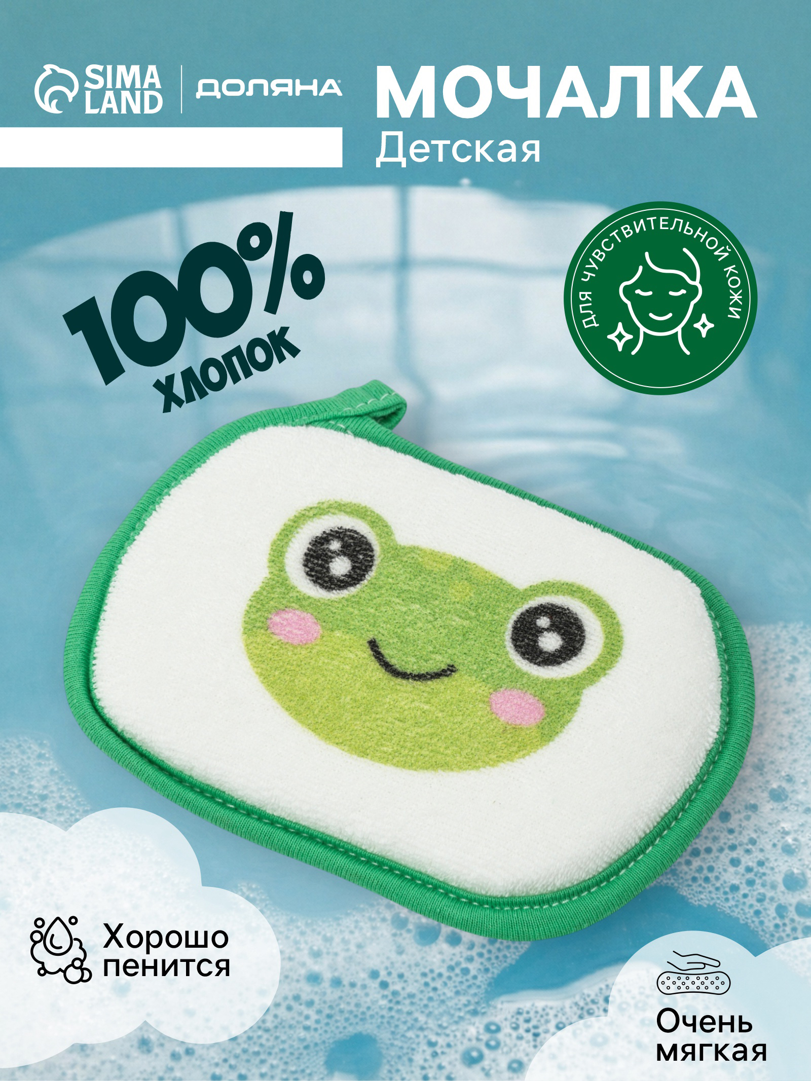 Мочалка детская для купания Доляна Лягушонок, длина 12 см