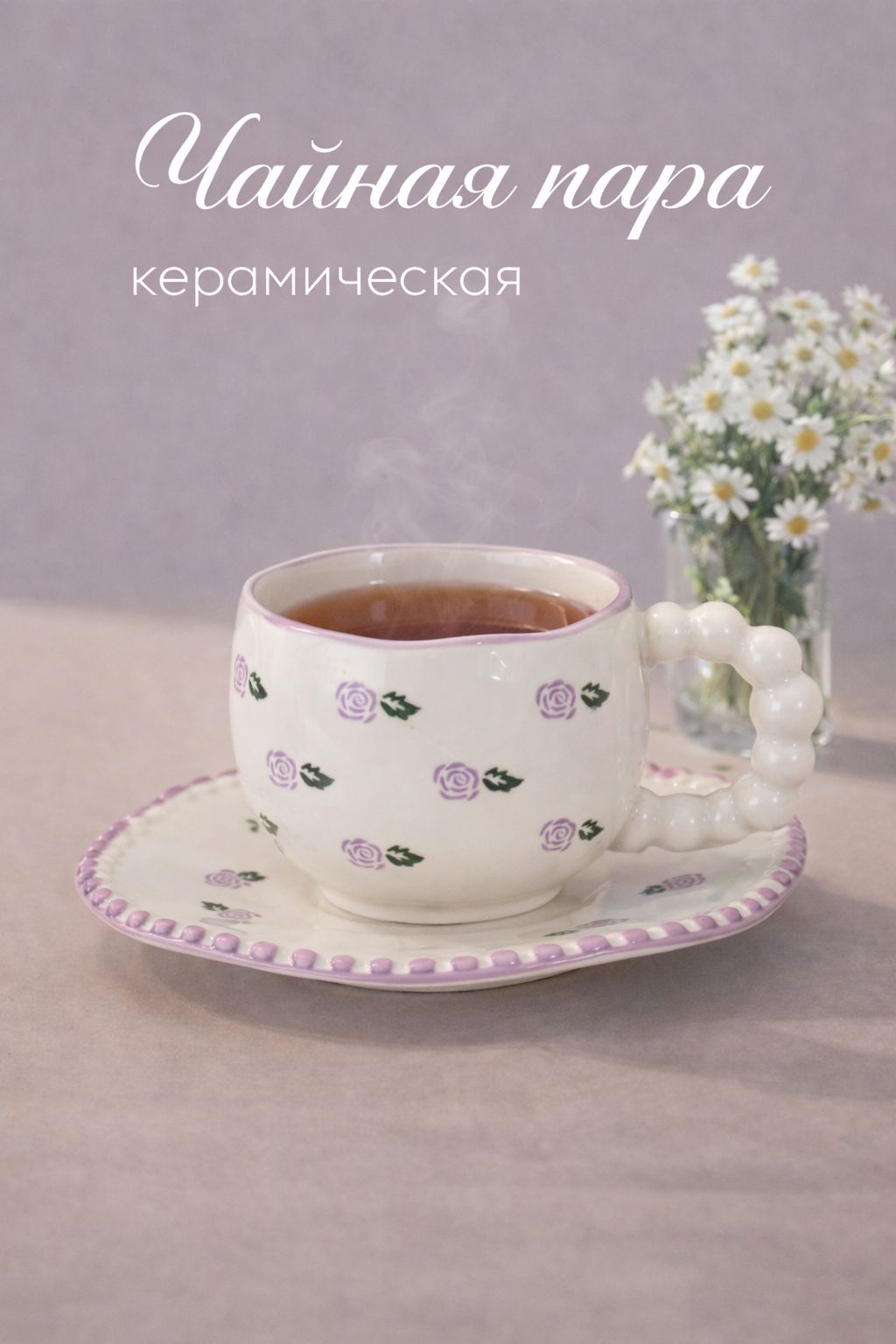 Чайная пара "Фиолетовая роза" блюдце 16х1,5 см, чашка13х10х7 см