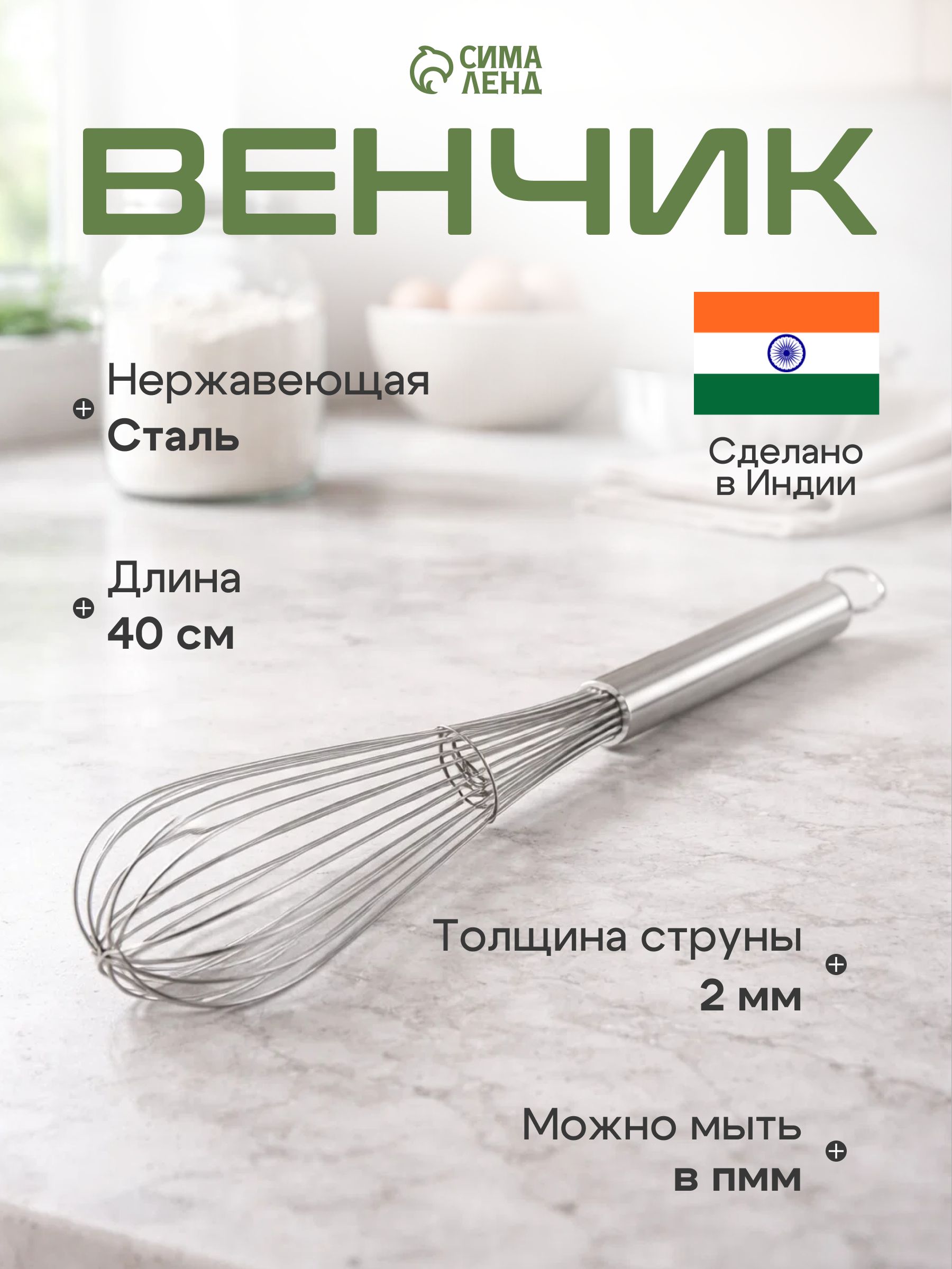 Венчик, 40 см, толщина струны 2 мм, нержавеющая сталь