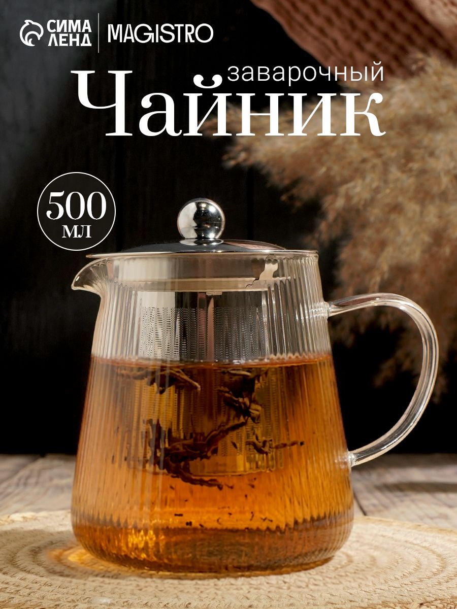 Чайник заварочный Magistro Грани , 500 мл, металлическое сито, стекло, прозрачный