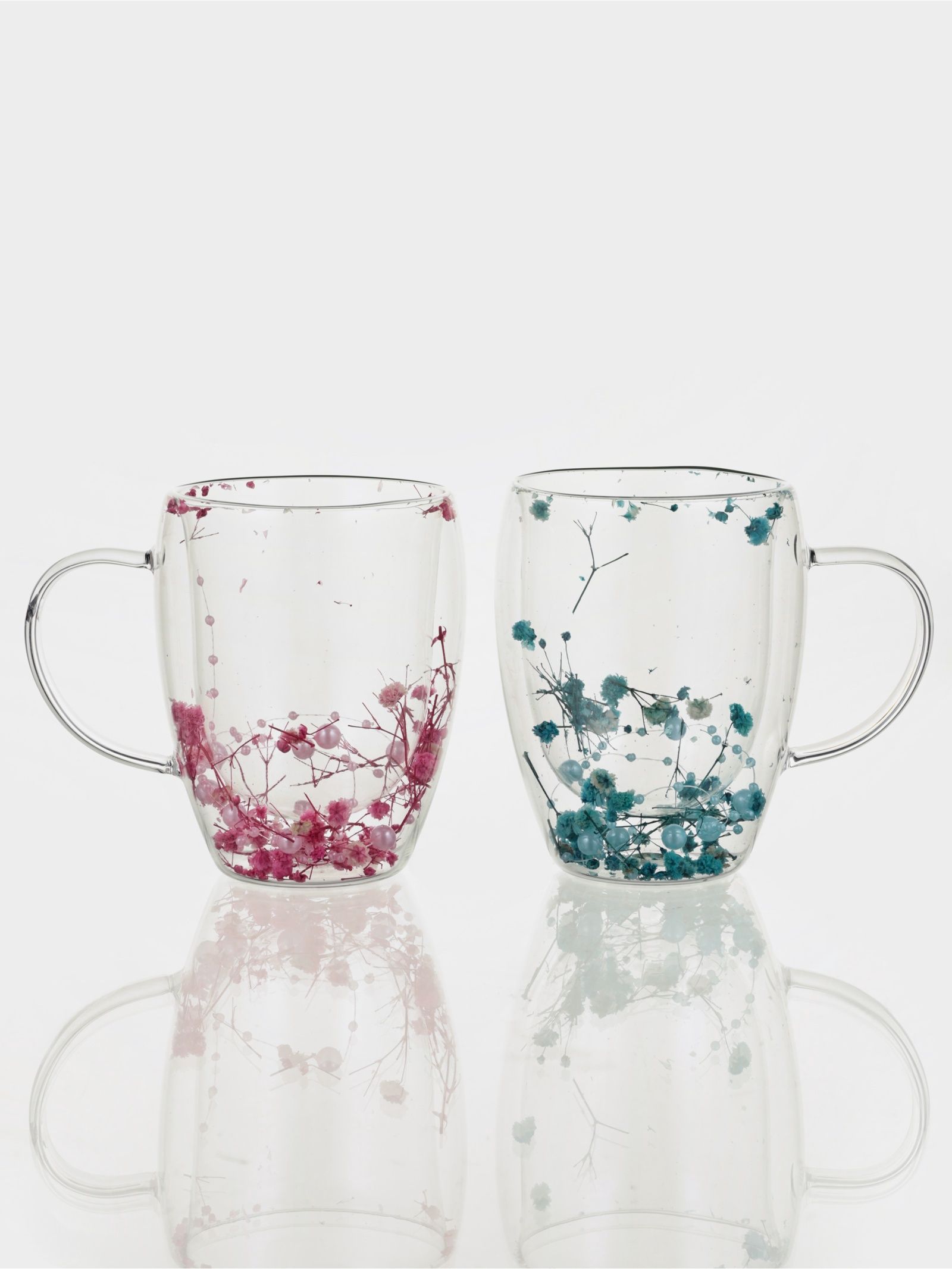Набор кружек с двойными стенками Сухоцвет, 350 мл, 2 шт., стекло, прозрачный