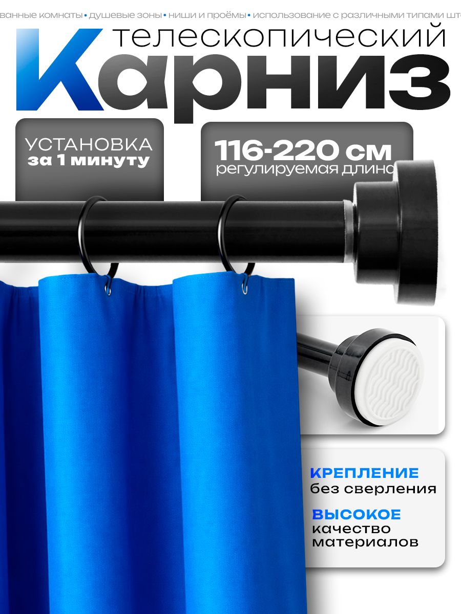 Карниз для ванной комнаты "Блеск" 116-220 см нержавеющая сталь, цвет черный