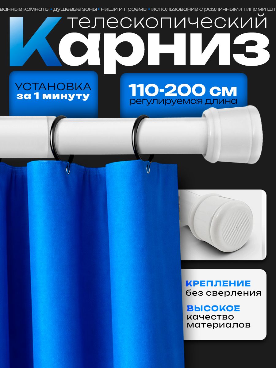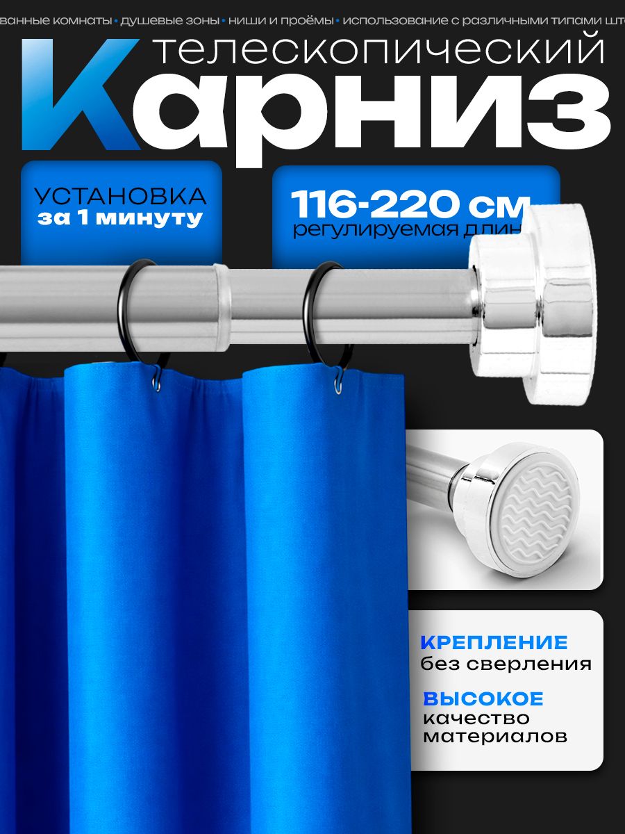 Карниз для ванной, 116-220 см, раздвижной, телескопический, нержавеющая сталь, цвет хром