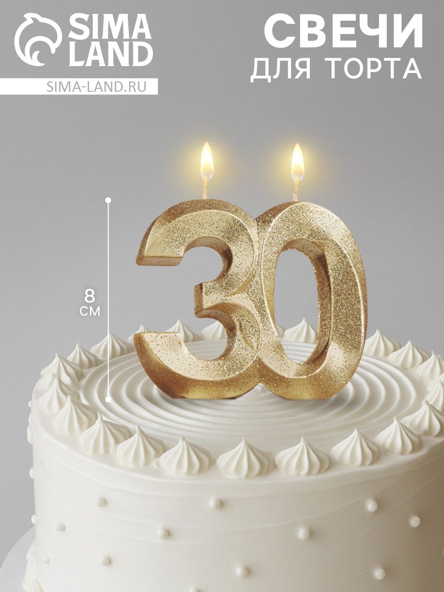 Свеча для торта юбилейная Грань / Цифра 30 / Золотой блеск / 8 см