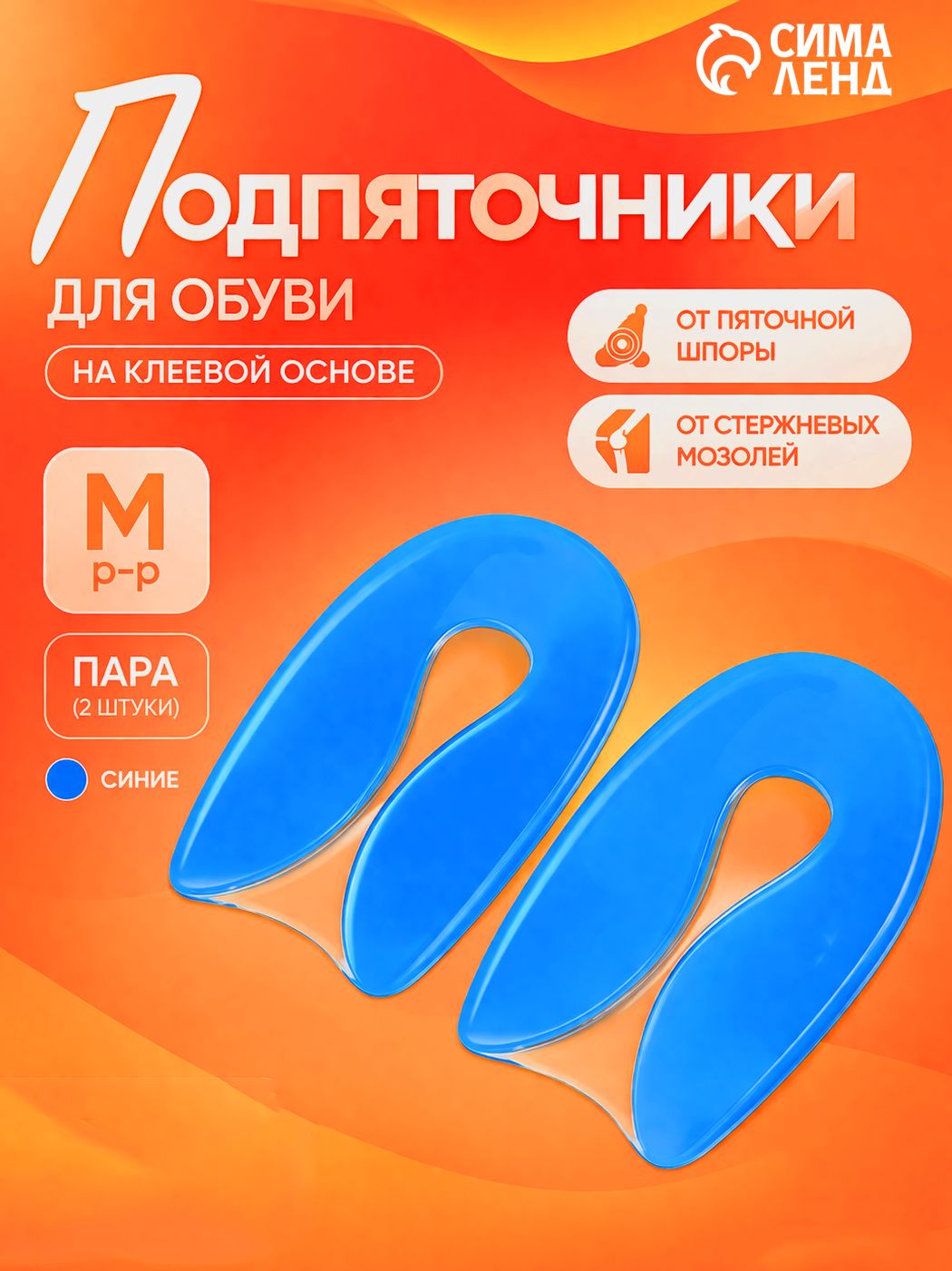 Вкладыши под пятку для обуви M самоклеящиеся, синие, 2 шт