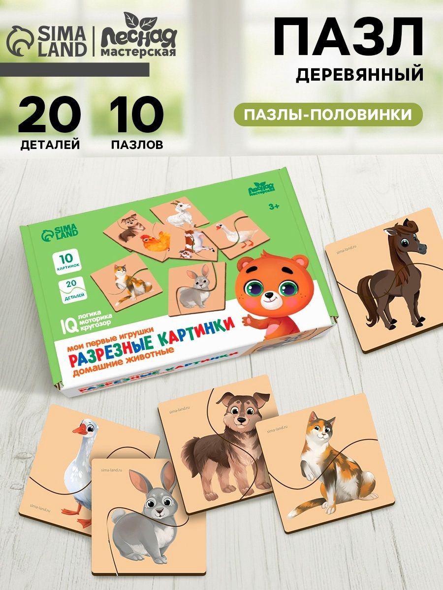 Пазлы для детей / развивающие игрушки / картинки половинки "домашние животные"