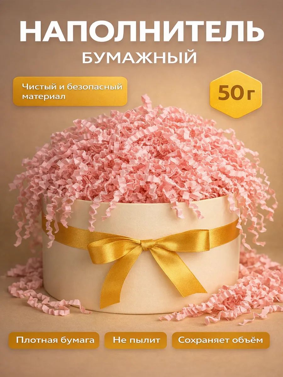 Наполнитель бумажный для подарков, розовый, 50 грамм