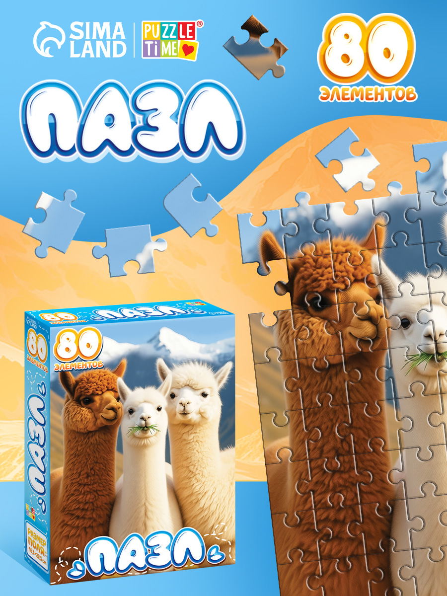 Пазл детский, "Милые альпаки", Puzzle Time, 80 деталей, пазлы для детей и взрослых