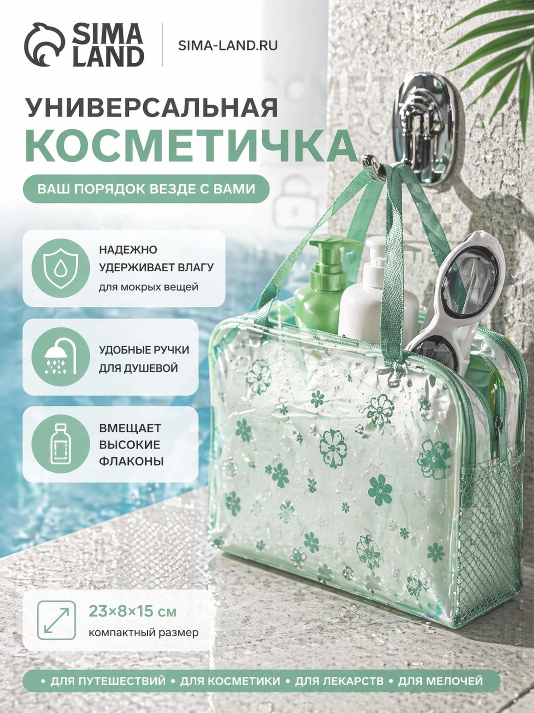 Косметичка женская для бассейна зеленая с рисунком, сумка с ручками