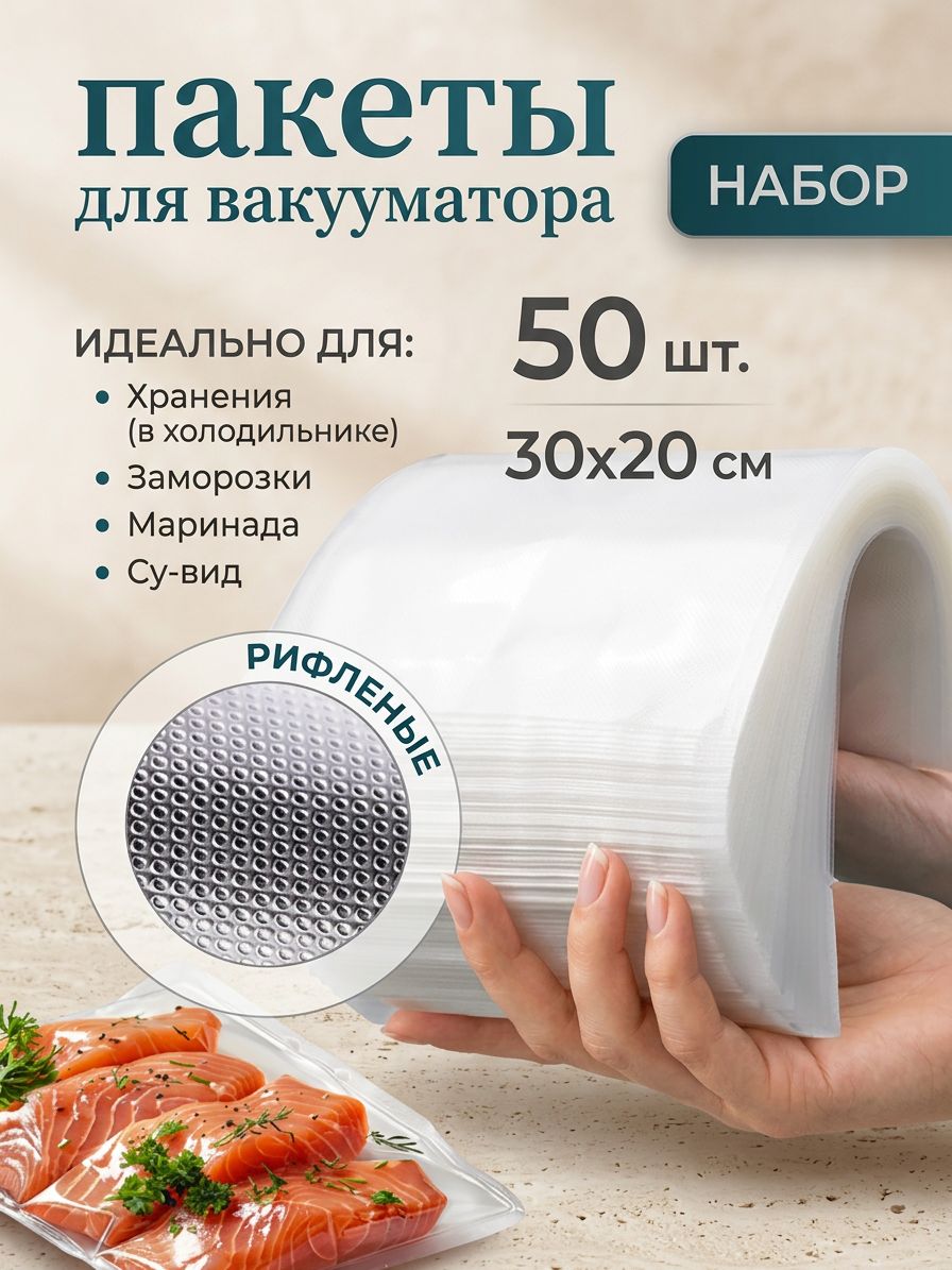 Пакеты для вакууматора рифленые, 20 х 30 см, 50 шт