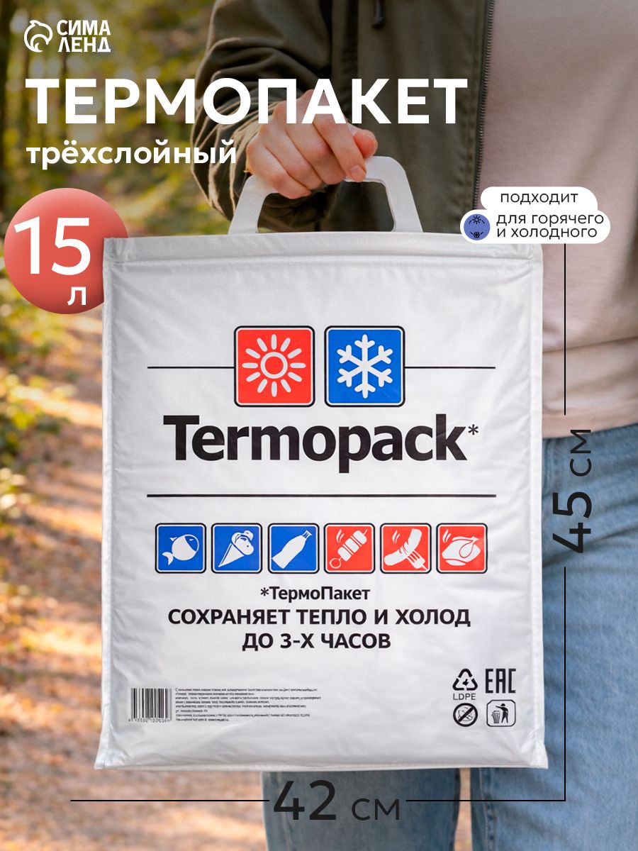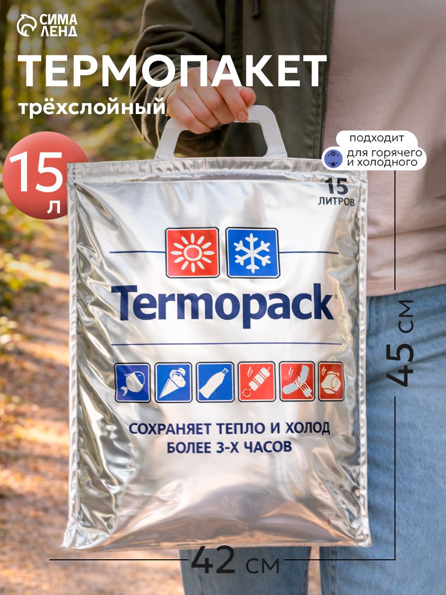 Термопакет для заморозки, для горячей еды, трёхслойный, многоразовый, 42 х 45 см (внеш. ПВД, внутр. металл)