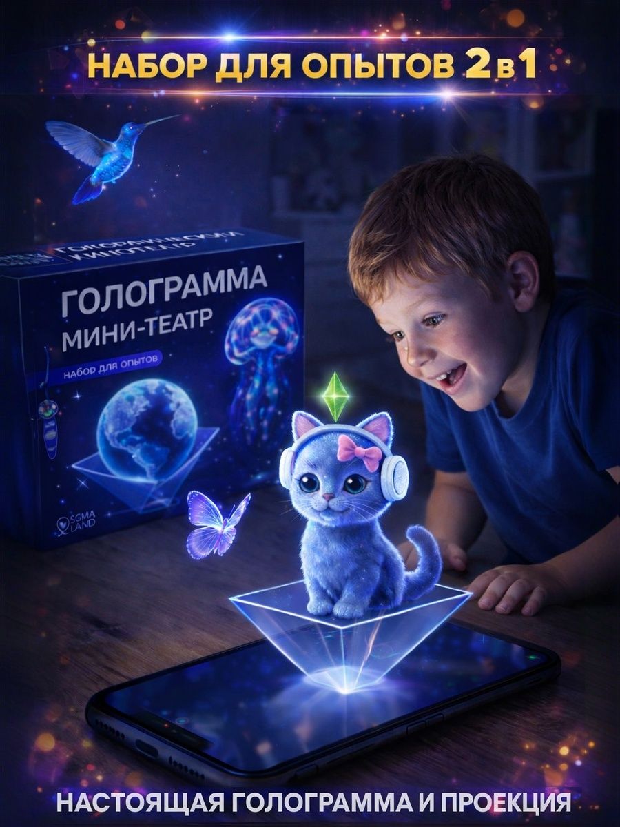 Опыты и эксперименты для детей, "Голографический кинотеатр" 2 в 1