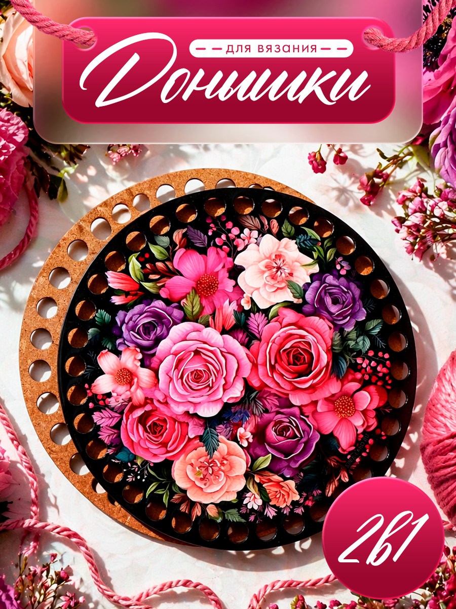 Донышко для вязания корзин, 2 в 1, "Букет цветов", круг 15 см, хдф 3 мм, донышки для вязания
