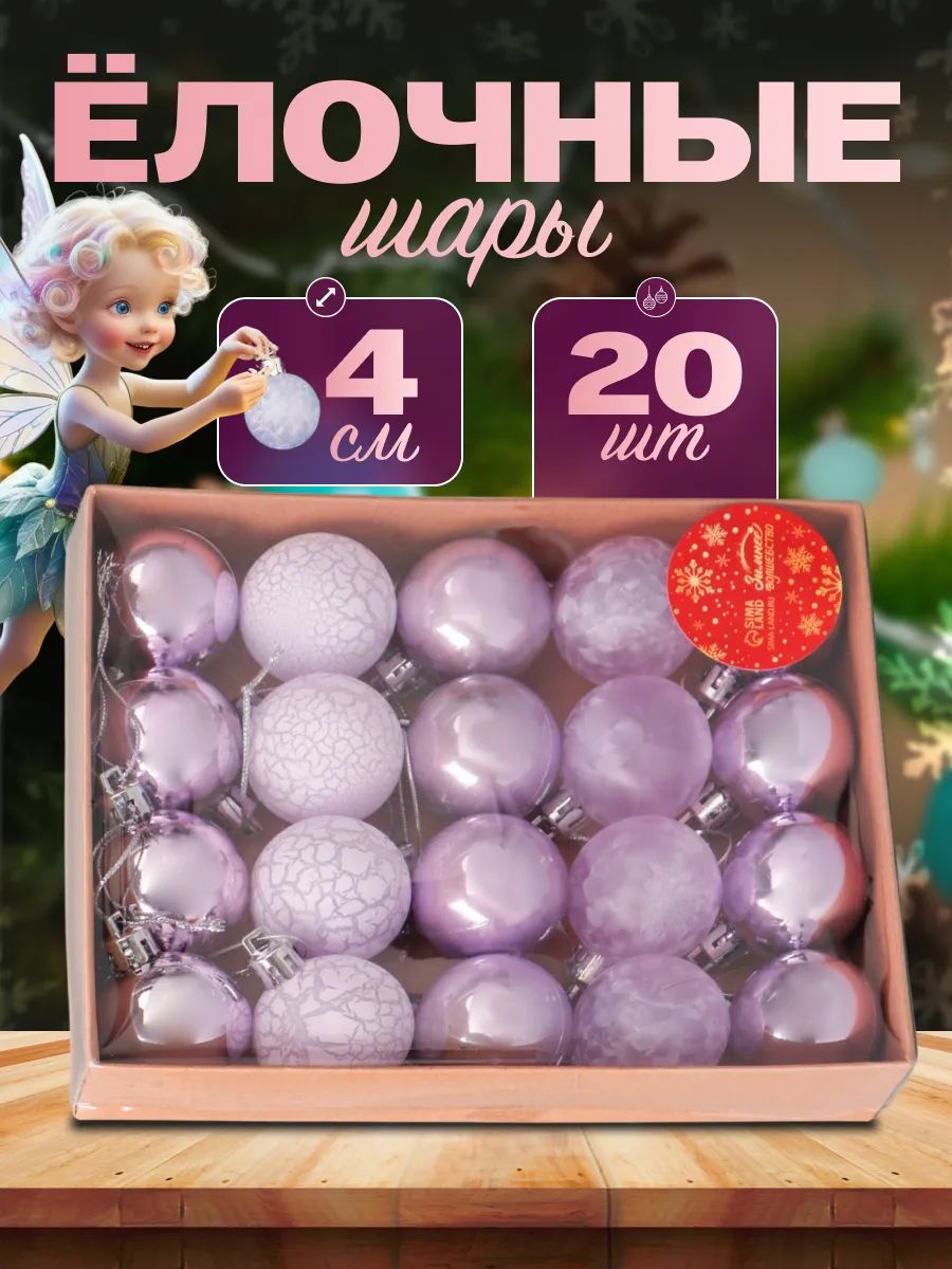 Елочные шары игрушки набор из 16 шт, 4 см, сиреневые / Украшения на елку новогодние / Набор елочных украшений