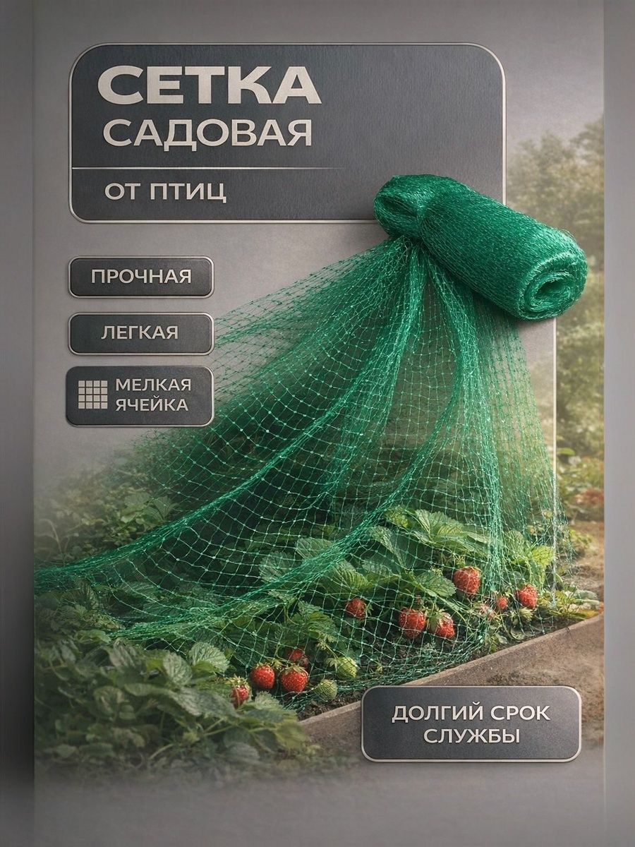 Сетка садовая от птиц, мягкая 10x2 м, ячейка 15x15 мм защита растений от птиц для дачи и огорода