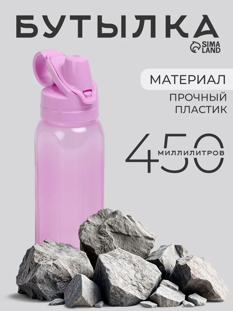 Бутылка для воды спортивная 450 мл, пластиковая, сиреневая