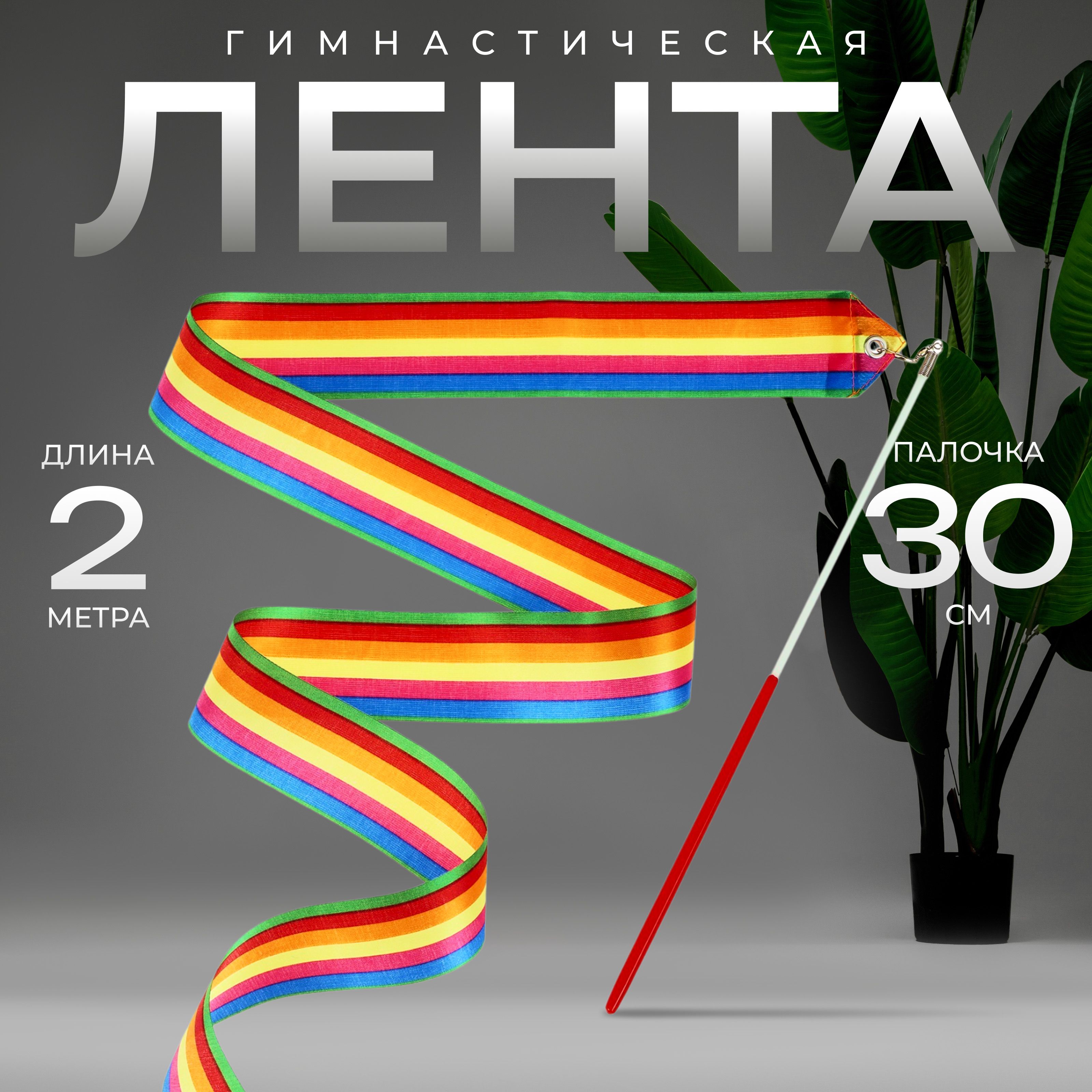 Лента для художественной гимнастики Grace Dance, 2 м, цвет радуга