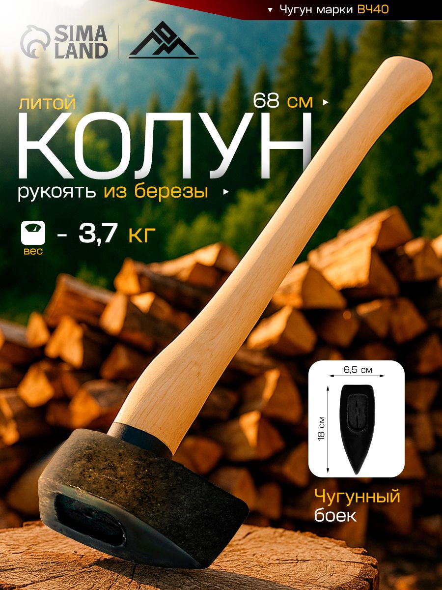 Топор ЛОМ 3.7 кг, колун для дров, усиленный, надёжный инструмент для колки древесины