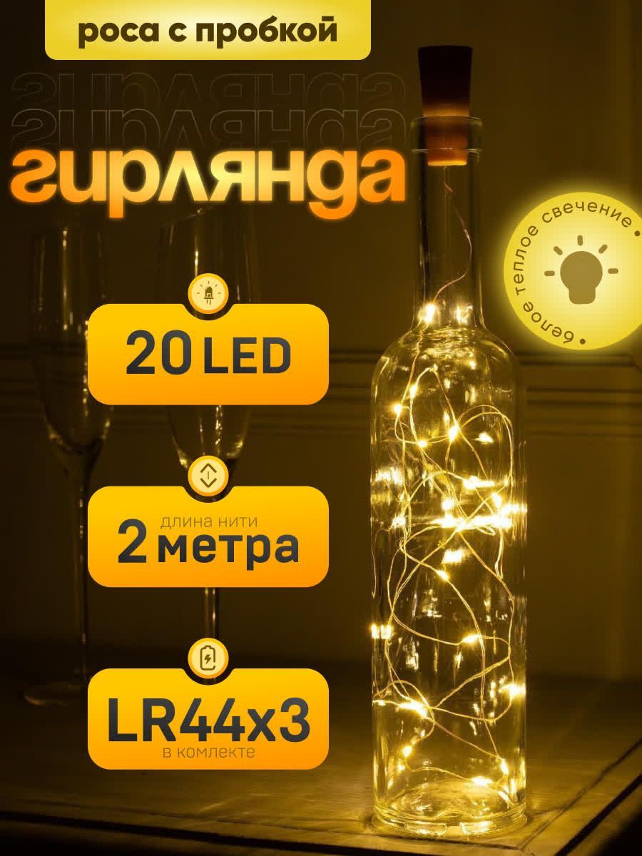 Гирлянда, на елку, гирлянда нить Роса, 2 м. свечение теплый белый