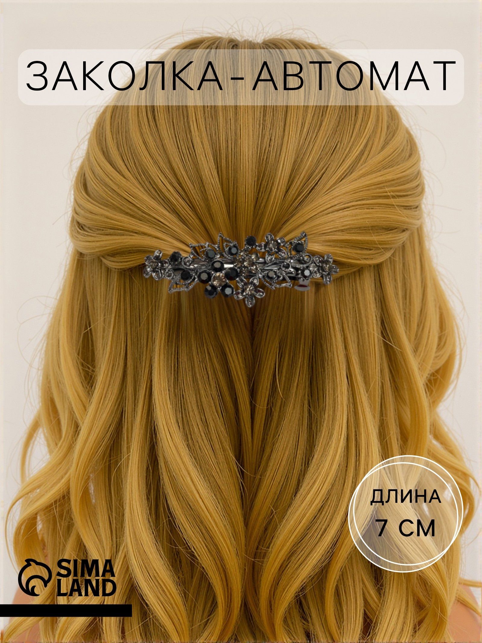 Заколка-автомат для волос женская / "Грациозо" с цветами, 7 см / заколка для девочки