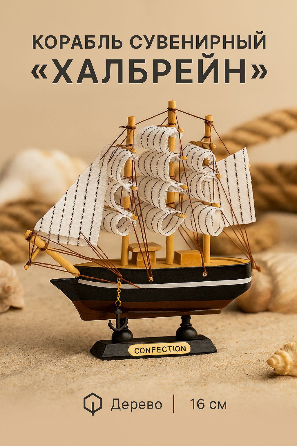 Корабль, малый / "Халбрейн", 16 см, белые паруса, дерево / Корабль сувенирный
