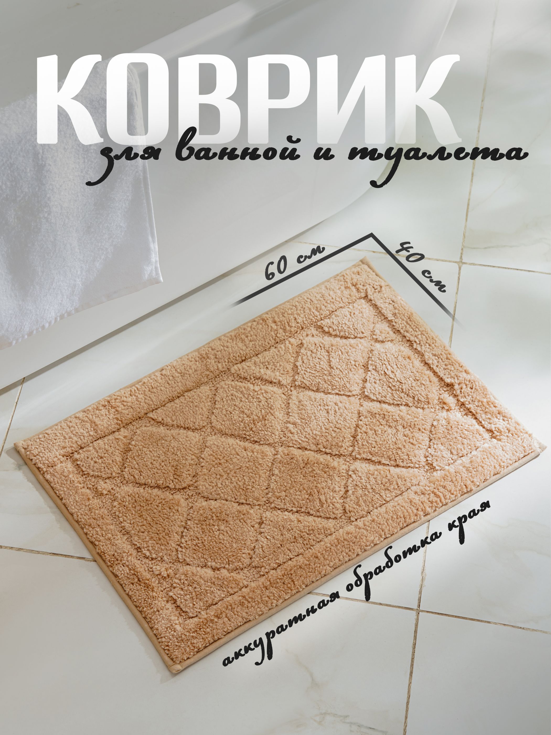 Коврик для ванной противоскользящий Шамбор, 40х60 см, Доляна, цвет бежевый