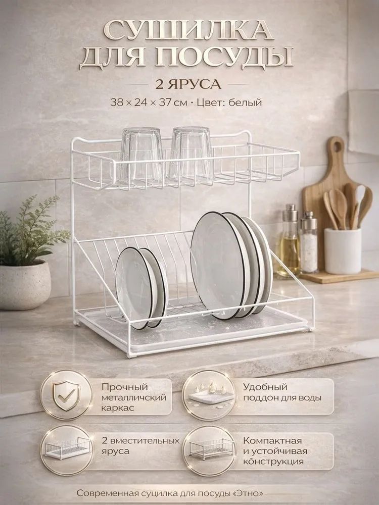 Сушилка для посуды с поддоном, 38.5 38.5 24 см, белый