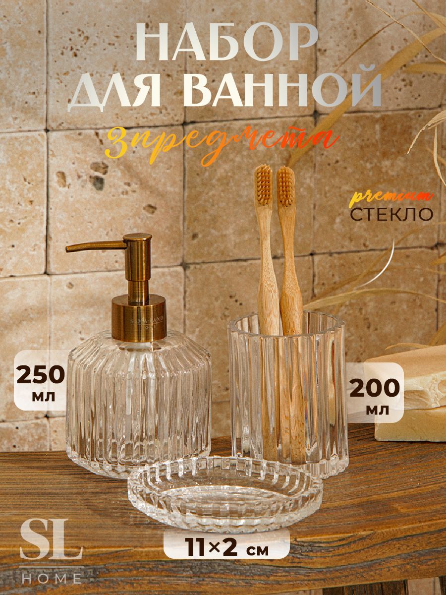Набор для ванной комнаты аксесуаров, объем 250 мл, 3 предмета: дозатор, мыльница, стакан