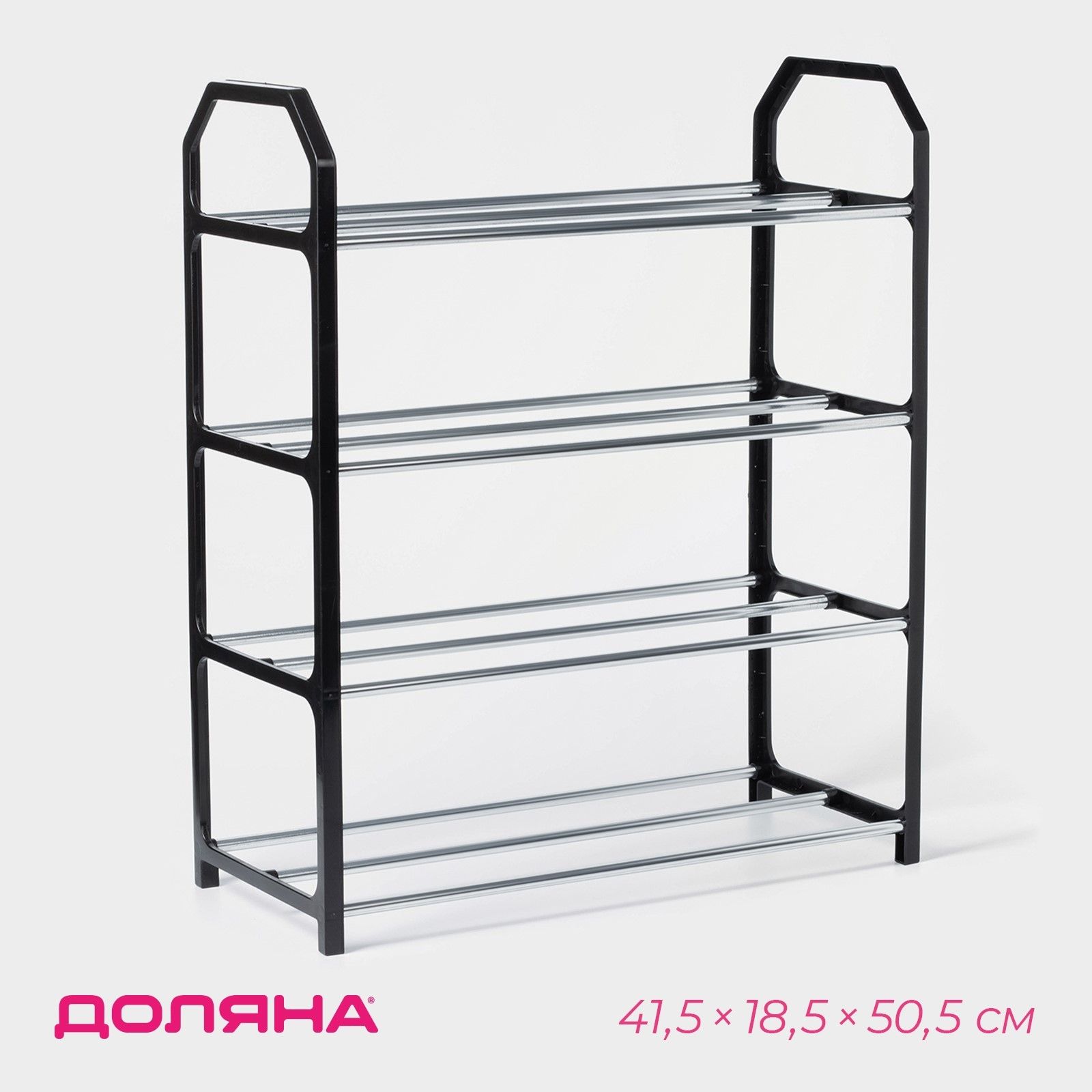 Обувница металлическая для прихожей, этажерка 4 яруса, цвет черный