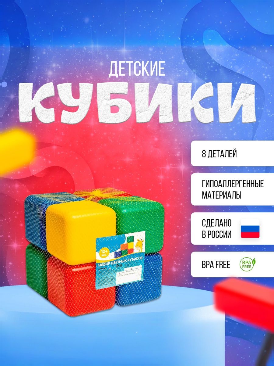 Кубики для малышей развивающие, 8 штук, 12 x 12 см / кубики детские